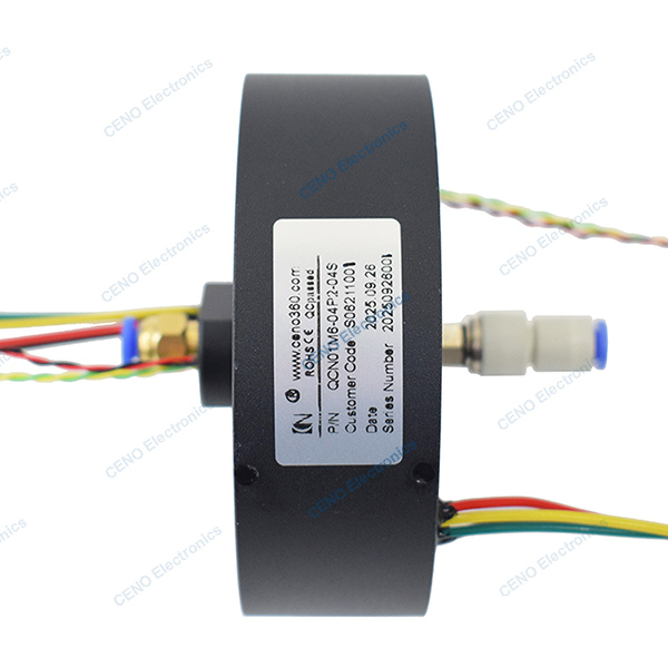 QCN01M6-04P2-04S is CENO integrate pneumatic hydraulic slip ring that combine circuits electric power, signal and 1 channel air. Integrate slip ring is characterized by its high degree of integration, which simplifies system design while enabling multifunctional transmission. Compared to the simple slip ring, the integrated slip ring is more compact, significantly saving installation space and reducing weight. For more information please contact us.